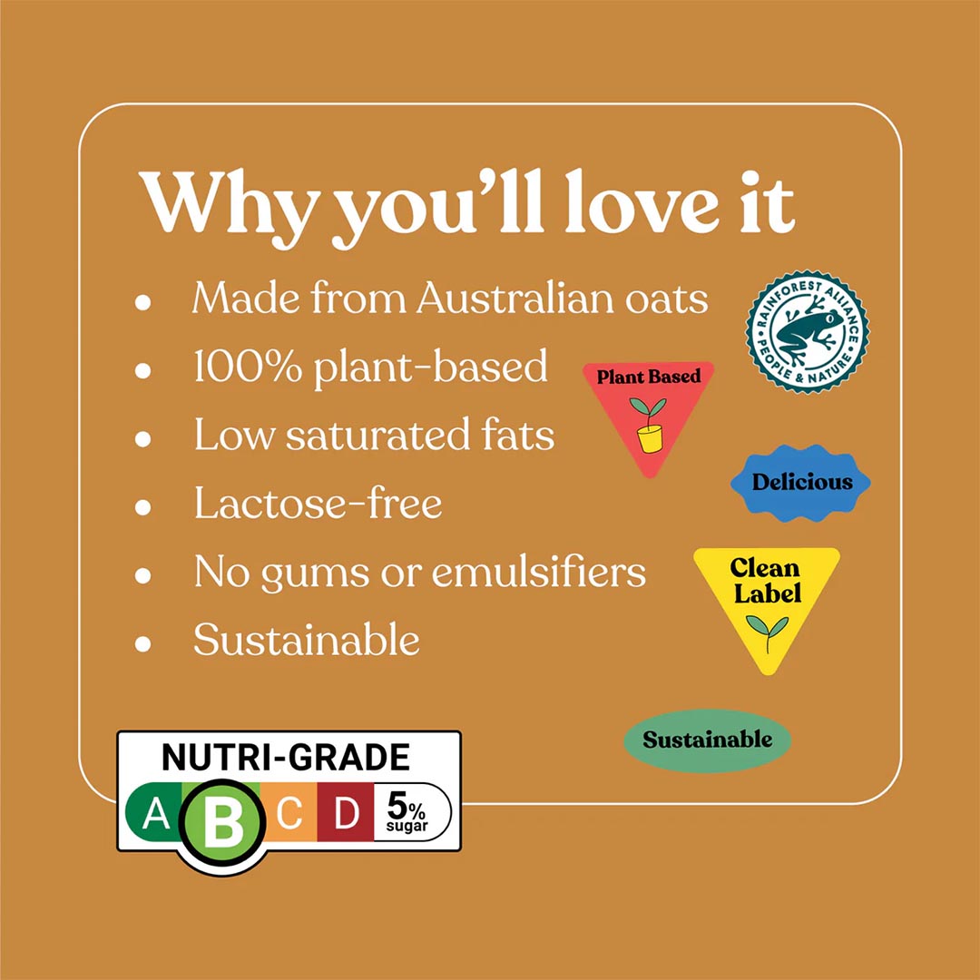 Thành phần: Oat Base (Water, Oat (10%)). Canola Oil, Palm Sugar, Sugar, Coffee Extract, Dipotassium Phosphate Stabilizer, Calcium Carbonate, Natural Coffee Flavouring, Salt